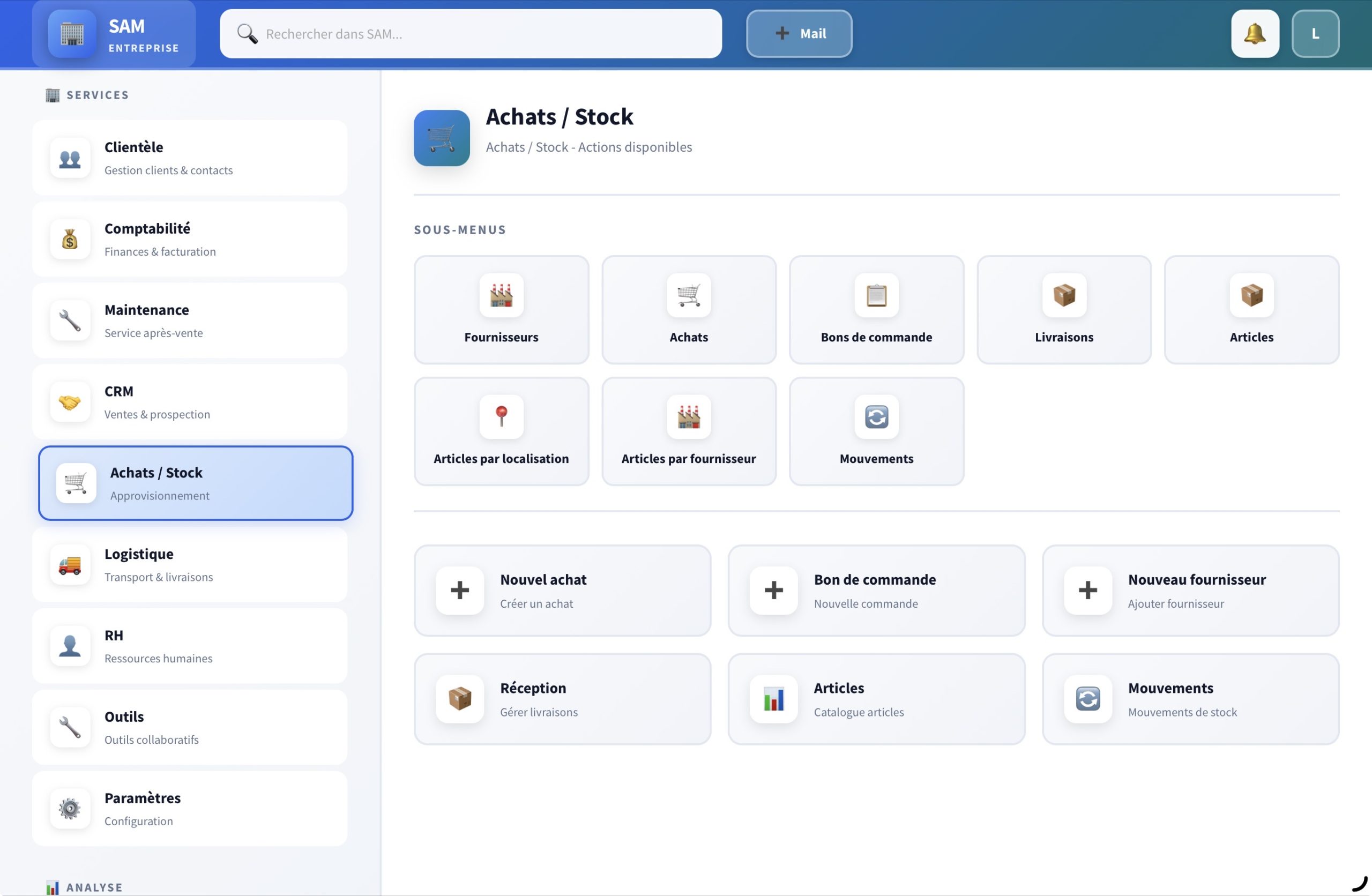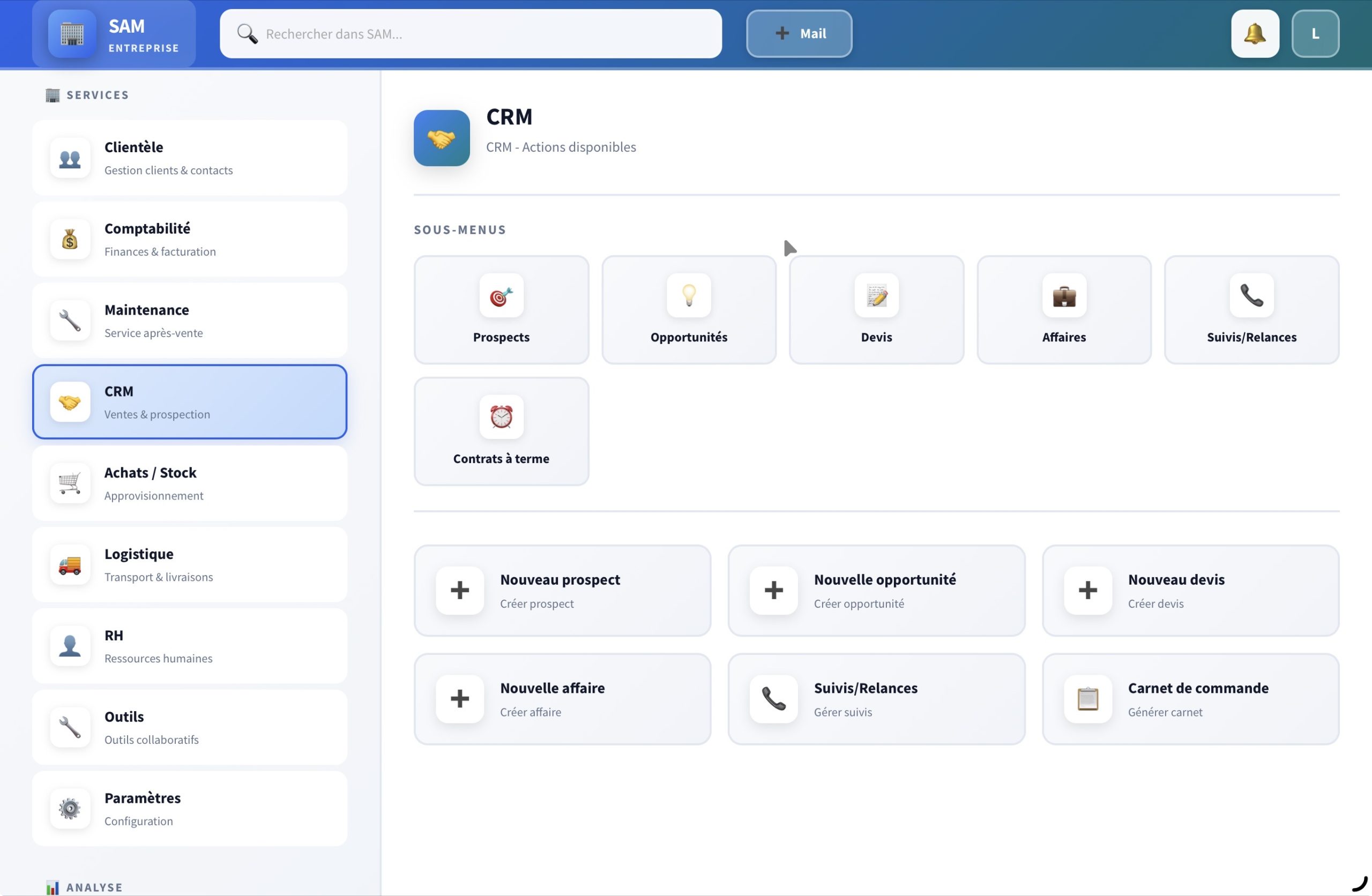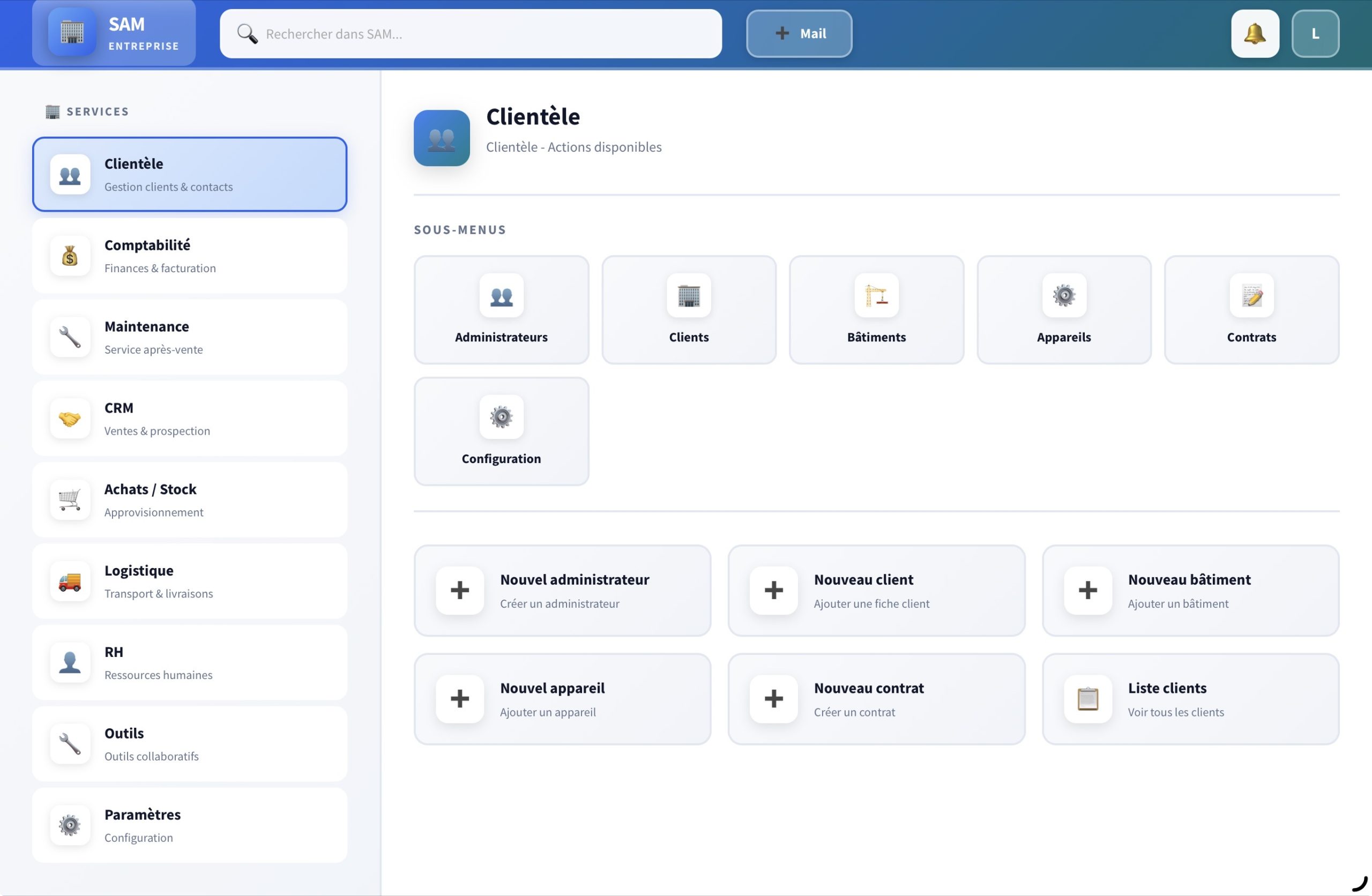 L’équipe SAM Entreprise a le plaisir de vous présenter sa toute nouvelle interface de navigation, conçue pour offrir une expérience utilisateur plus fluide, plus rapide et plus intuitive.